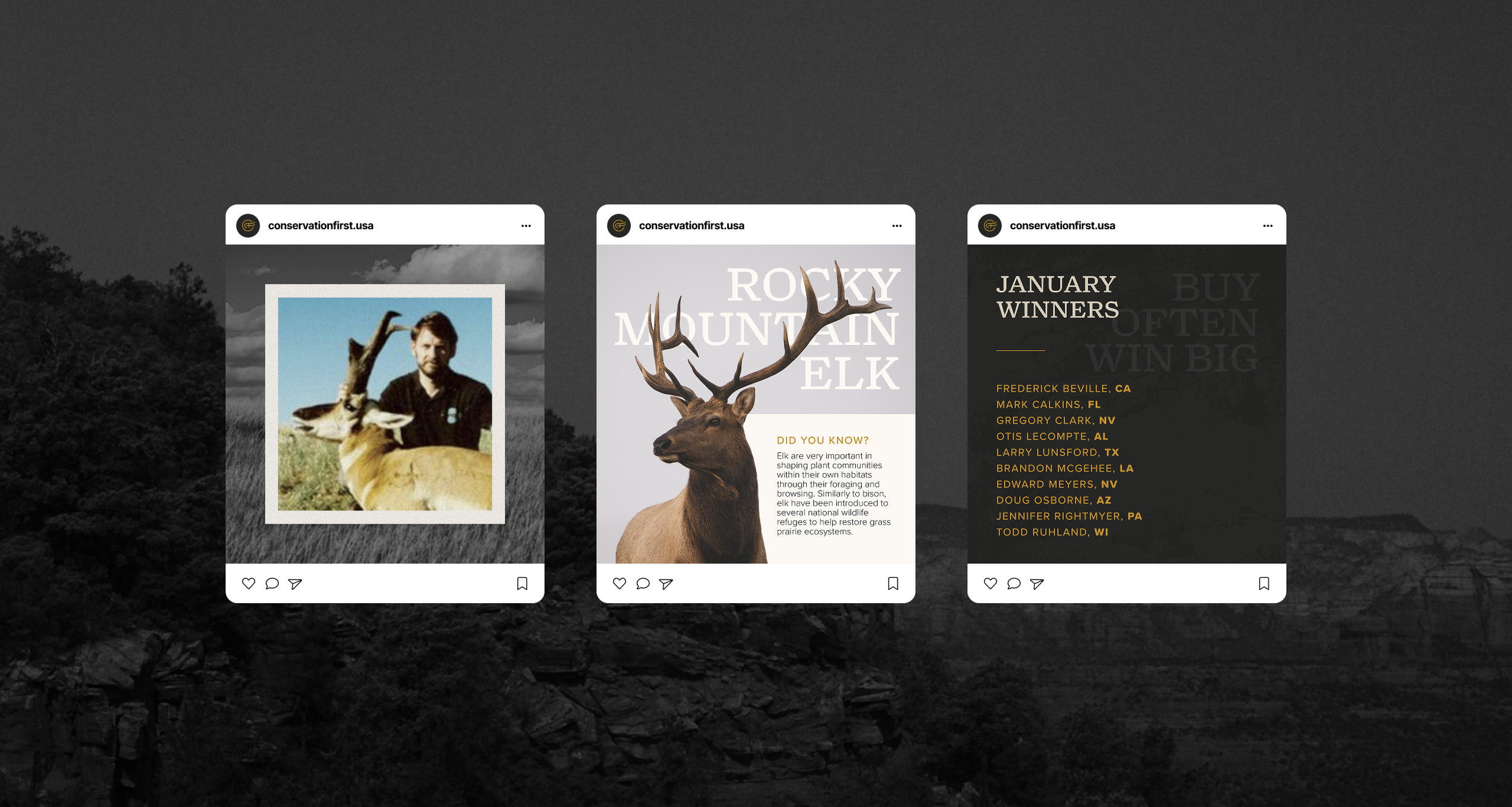 We delivered a comprehensive rebrand—including a new name, identity system, website, social media strategy, email campaigns, and raffle materials—built around a clear, consistent message: conservation comes first. Every word and visual was intentionally crafted to tell the deeper story of responsible hunting as a force for protecting wildlife and preserving natural ecosystems.